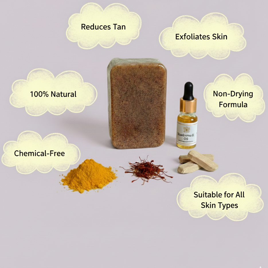 This blend gently cleanses, brightens the skin, and restores your natural glow. Experience soft, radiant, and rejuvenated skin with every wash — the essence of true Ayurvedic care.