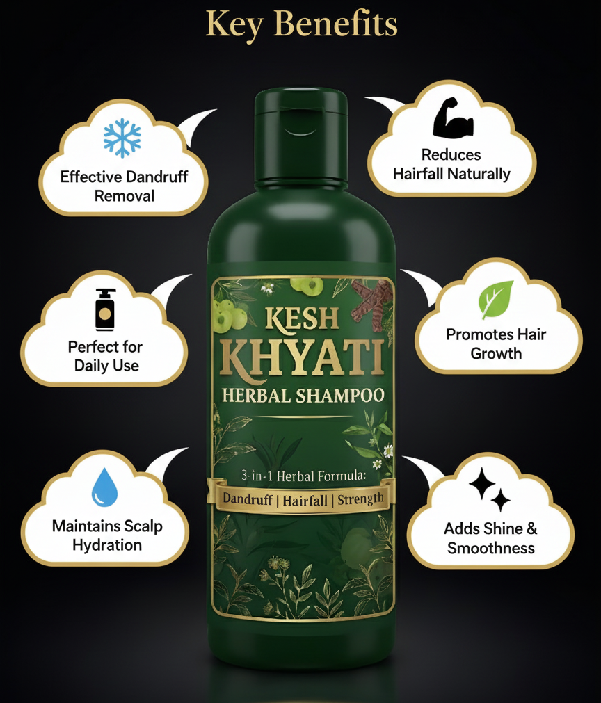 Give your hair the care it deserves with Kesh Khyati Herbal Shampoo, a reliable Ayurvedic formula enriched with Amla, Shikakai, and Bhringraj. Designed to reduce hairfall, remove dandruff, and strengthen weak roots, this natural 3-in-1 blend ensures healthier, cleaner, and stronger hair over time.